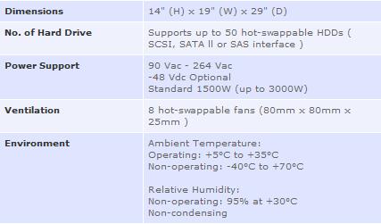 The 8U SK-8U50 rack mountable storage enclosure is designed for storage server system and supports up to 50 hot-swappable hard disk drives. The server model supports Intel® Dual/Quad core Xeon or AMD® Quad Opteron compliant server board 13.0" x 16.0" size. The storage model supports an external mount 5 1/4" RAID