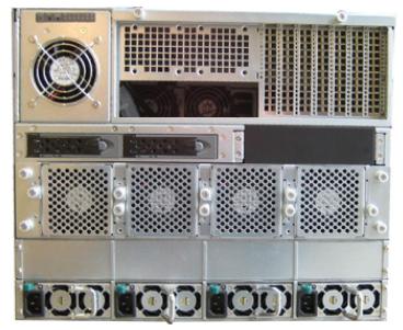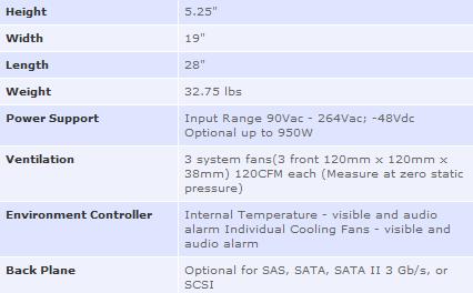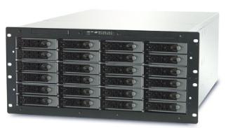The 5U 24-bay SK-5U24 rack mountable storage enclosure is designed for storage server system and supports up to twenty-four hot-swappable hard disk drives, available in SCSI, SATA, SATA II 3 Gb/s, or SAS interface. SR524 allows support for a SSI 3.0 / 3.5, CEB 1.0 or AMD Dual Opteron compliant server board 12.0" x 13.0" in size. The storage model allows for an external mount 5 1/4" RAID or NAS controller.