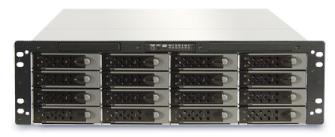 The 3U 16-bay SK-3U16 rack mountable storage enclosure is designed for storage server system and supports up to sixteen hot-swappable hard disk drives, available in SCSI, SATA, SATA II 3 Gb/s or SAS interface. SR316 allows support for a SSI 3.0 / 3.5, CEB 1.0 or AMD Dual Opteron compliant server board 12.0" x 13.0" in size. The storage model allows support for an internal mount storage controller or external mount 5 1/4" RAID.